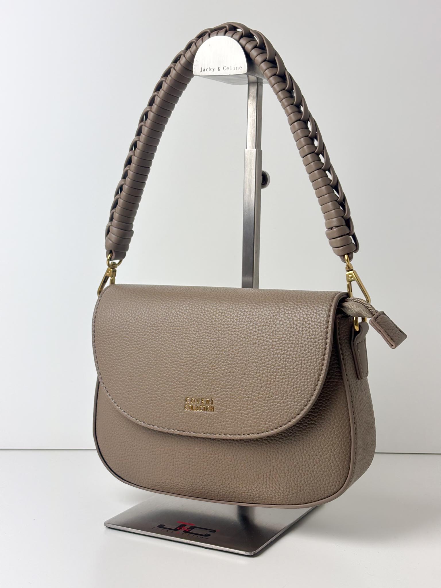 Torebka listonoszka z plecionym uchem COVERI COLLECTION taupe