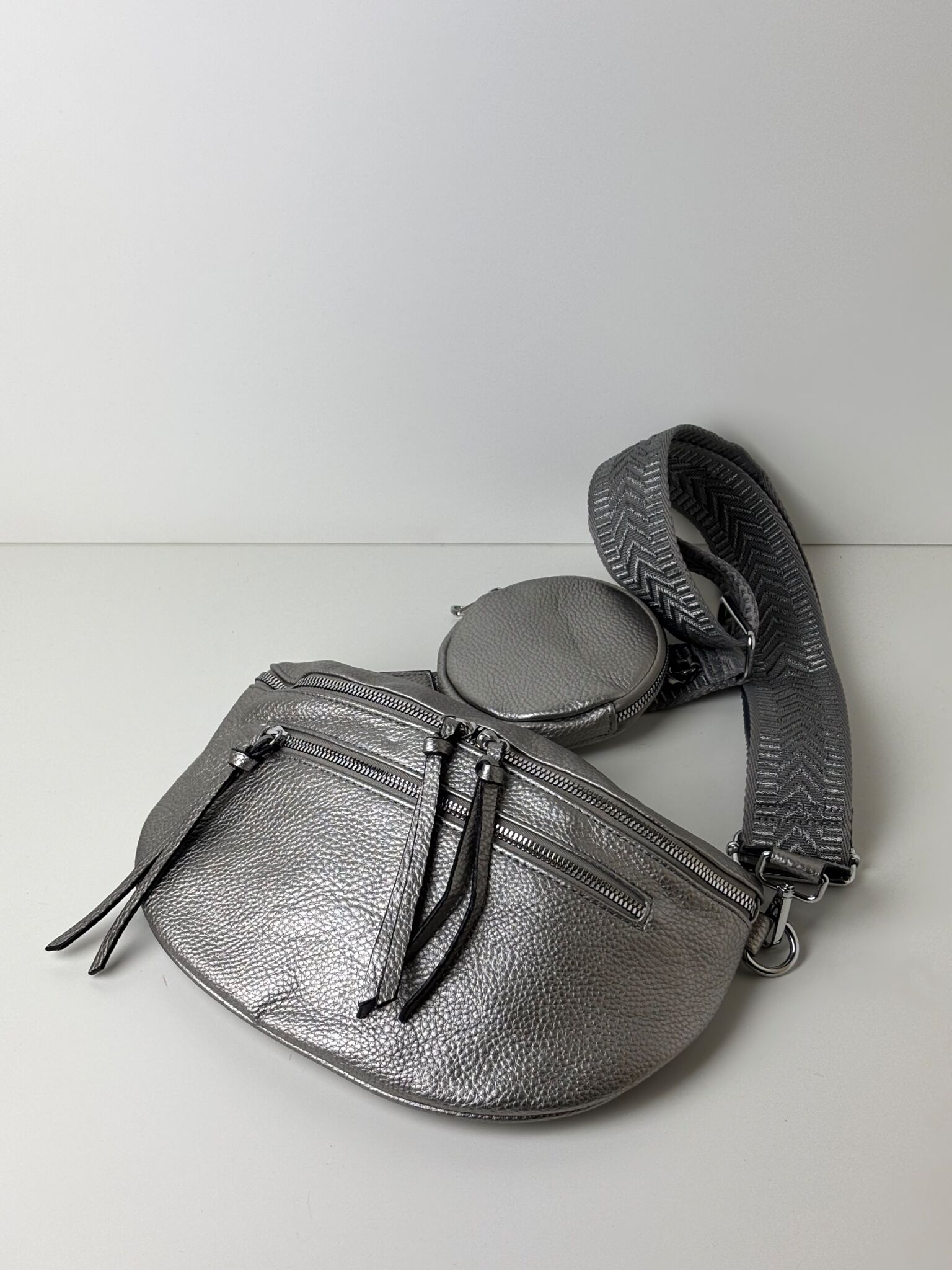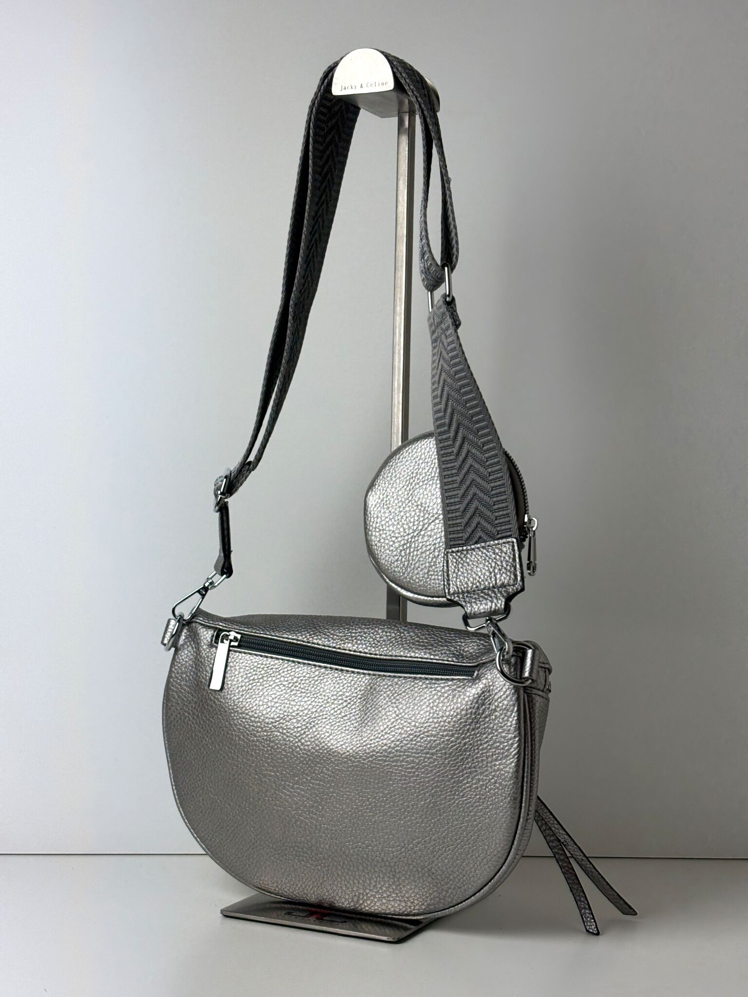 Torebka nerka z okrągłym portfelikiem Paolo Bags srebrna
