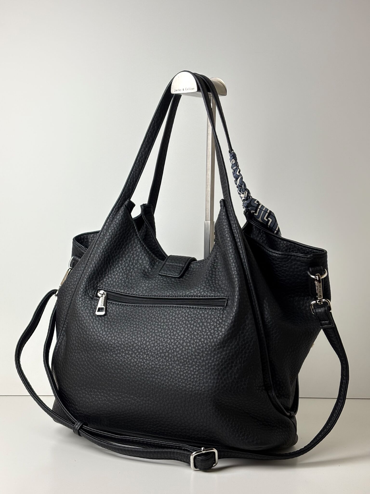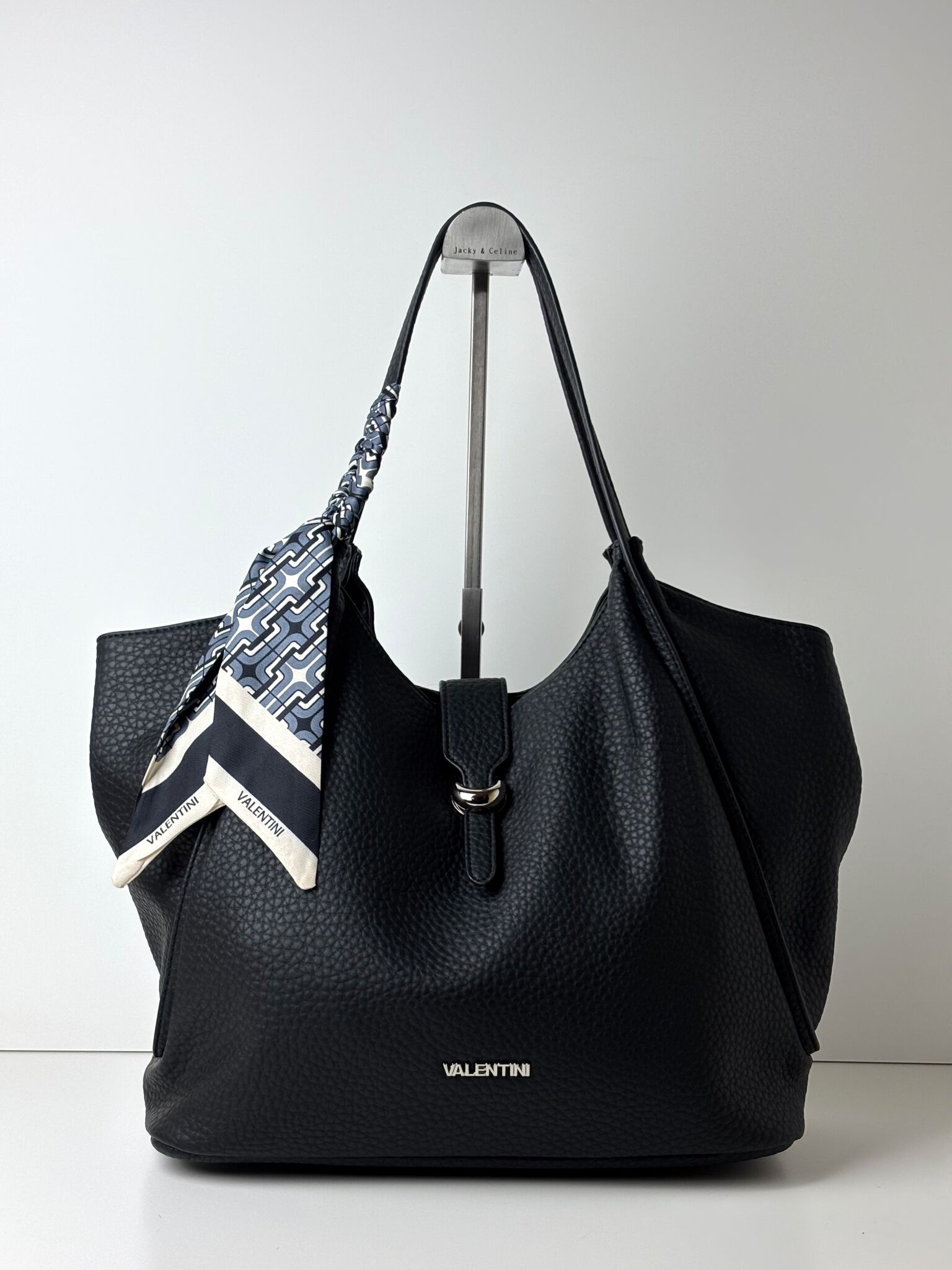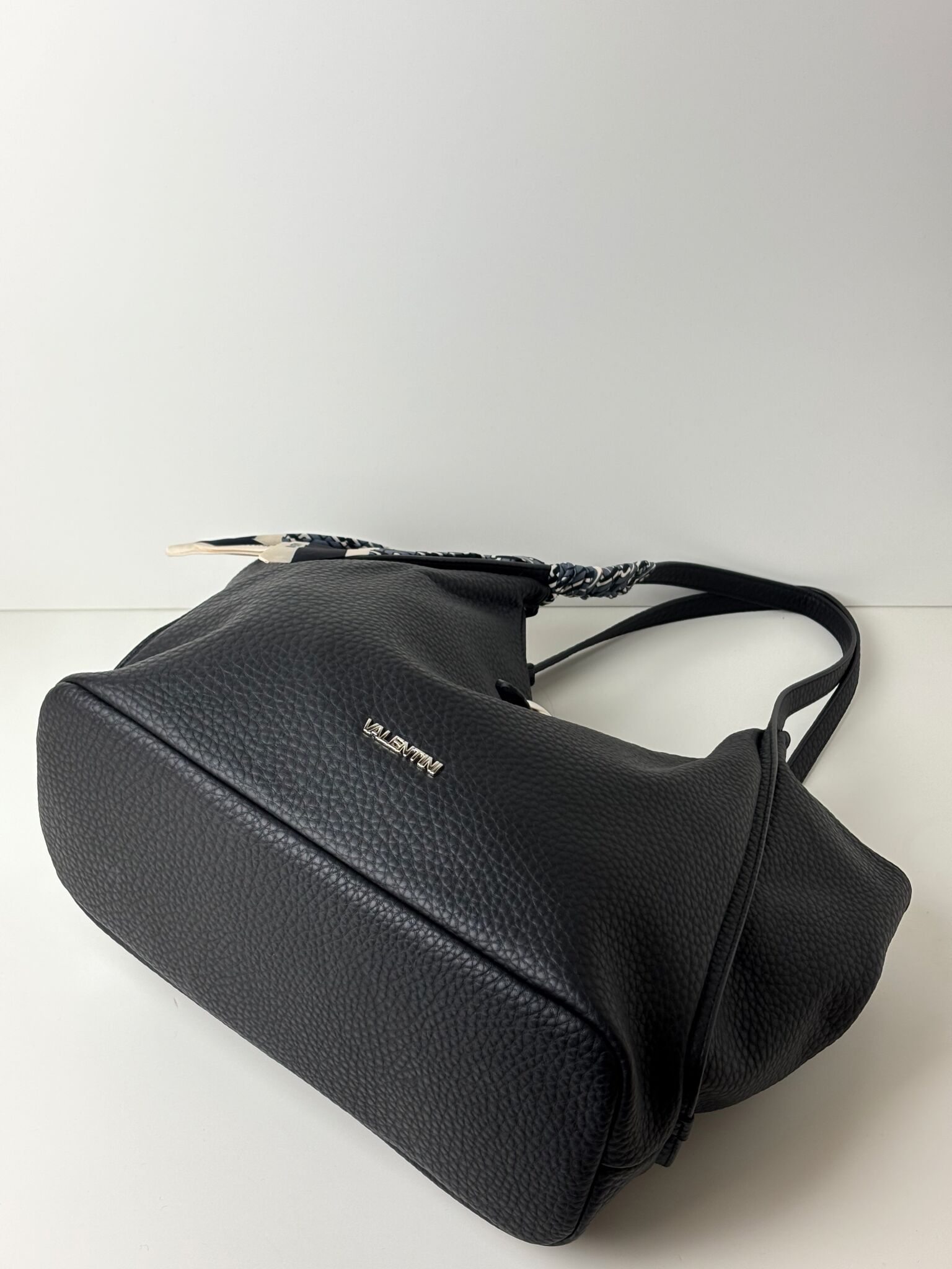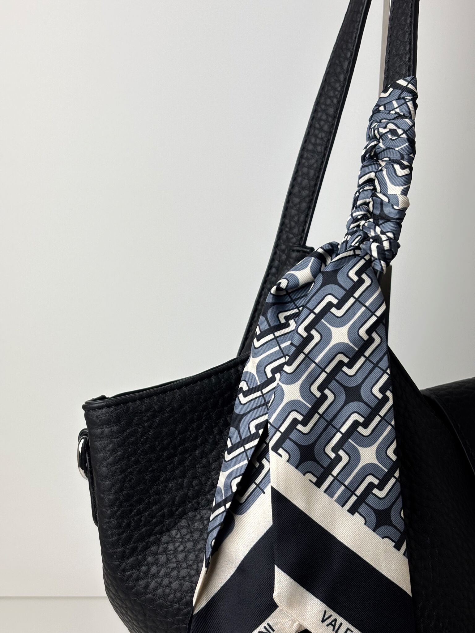 Torebka shopper z ozdobną apaszką na uchu GINO VALENTINI czarna