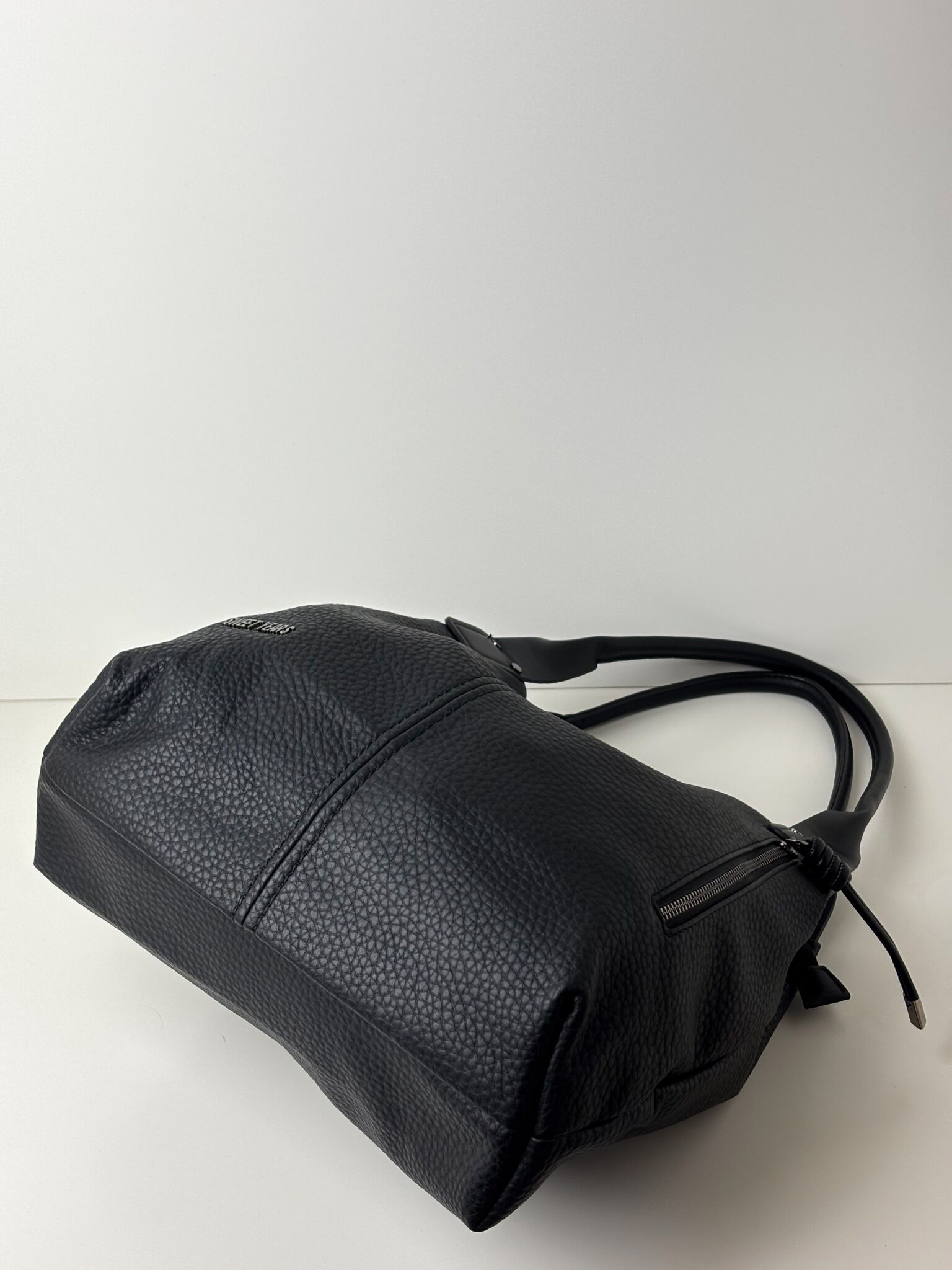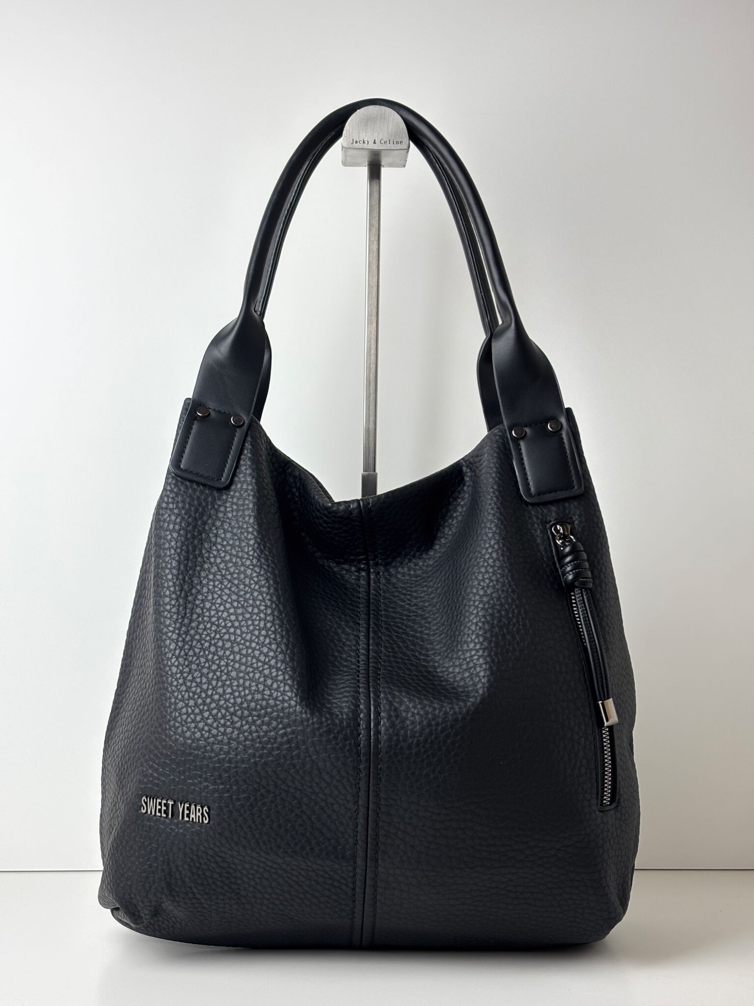 Marka Sweet Years od lat kojarzona jest z nowoczesnym podejściem do mody, łączącym sportowy luz z elegancją. Prezentowana torebka w kolorze głębokiej czerni to model ponadczasowy. Fason typu „worek” (shopper bag) charakteryzuje się miękką formą, która nie tylko świetnie wygląda, ale także dopasowuje się do zawartości. Srebrne detale, w tym subtelne logo marki umieszczone na froncie, dodają całości biżuteryjnego charakteru, sprawiając, że torebka staje się głównym punktem każdej stylizacji.