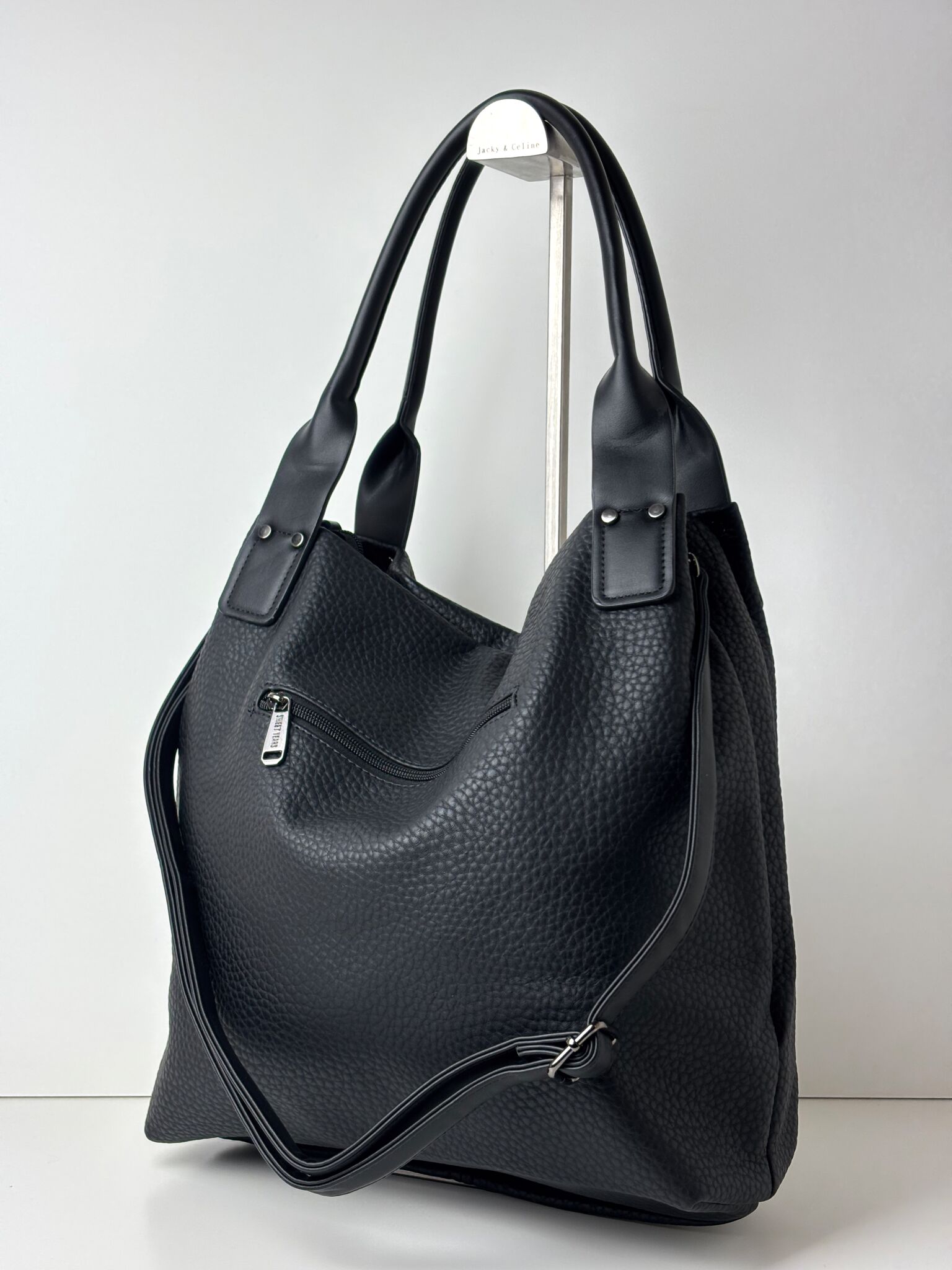 Szukasz idealnego połączenia stylu, funkcjonalności i włoskiego designu? Czarna torebka typu worek marki Sweet Years to propozycja dla kobiet, które nie chcą wybierać między modnym wyglądem a praktycznością. Ten model to kwintesencja miejskiego szyku, który sprawdzi się w każdej sytuacji – od porannego pośpiechu w drodze do pracy, przez biznesowe spotkania, aż po popołudniowe zakupy czy wieczorne wyjście z przyjaciółmi.