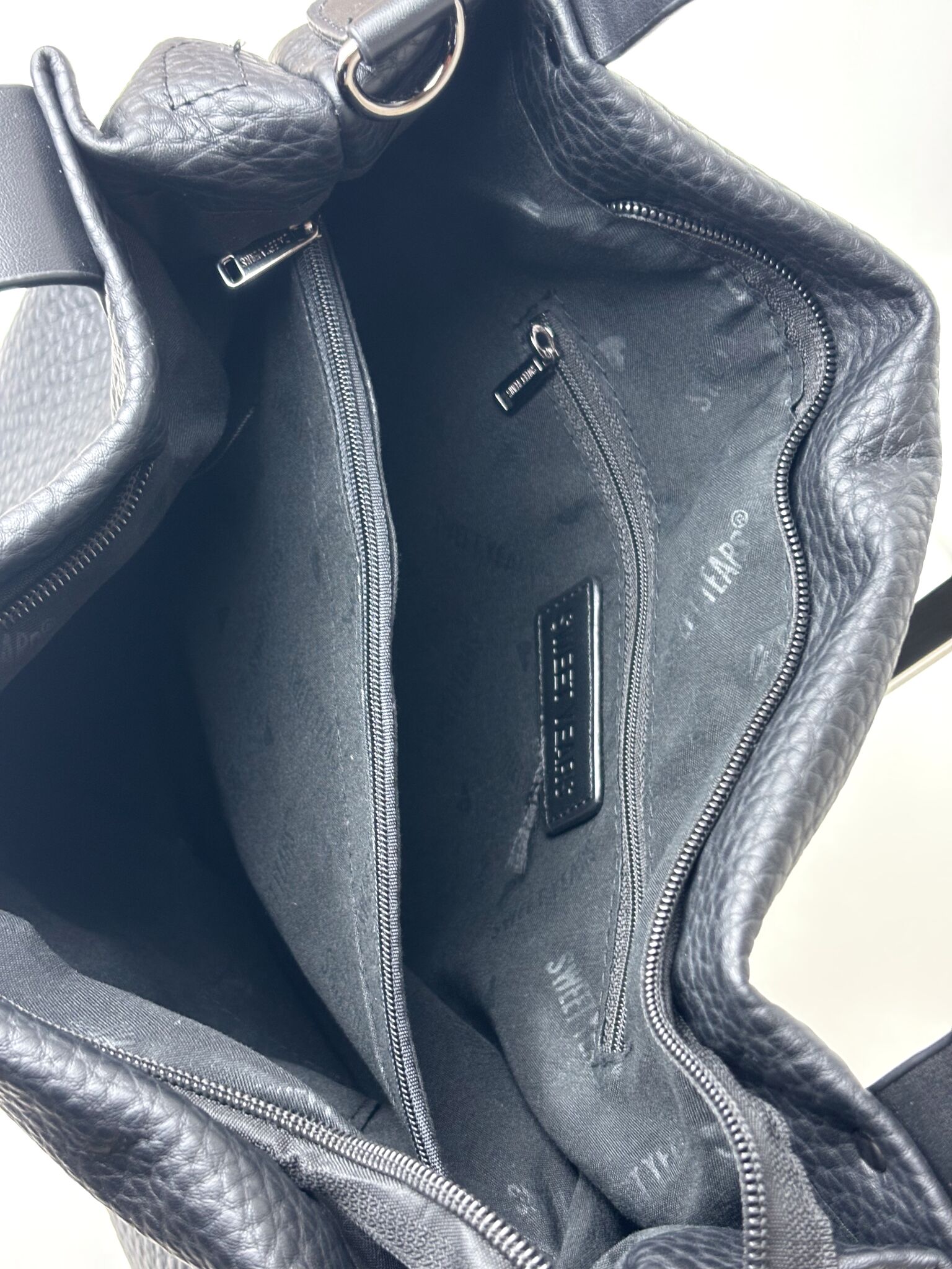 • Dodatkowe kieszonki: Wewnątrz znajdziesz mniejszą kieszeń zapinaną na zamek (na klucze lub kosmetyki) oraz otwarte kieszonki dedykowane na telefon i inne drobiazgi, które zawsze chcesz mieć pod ręką.